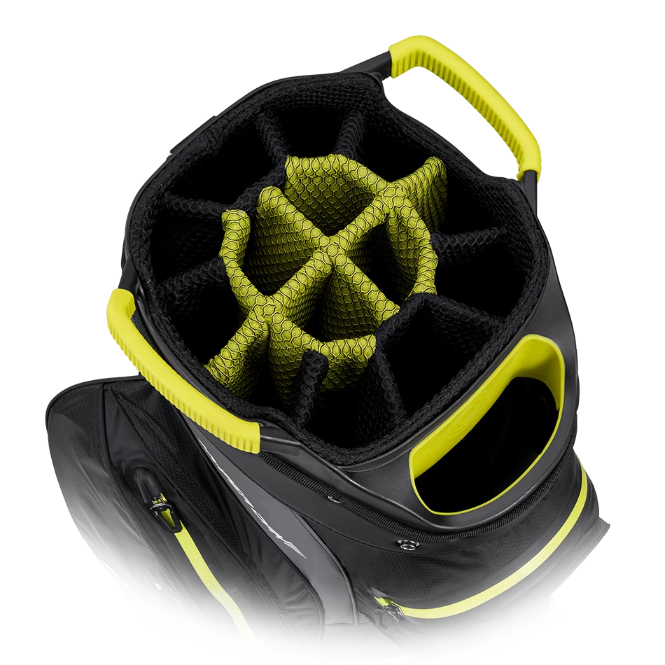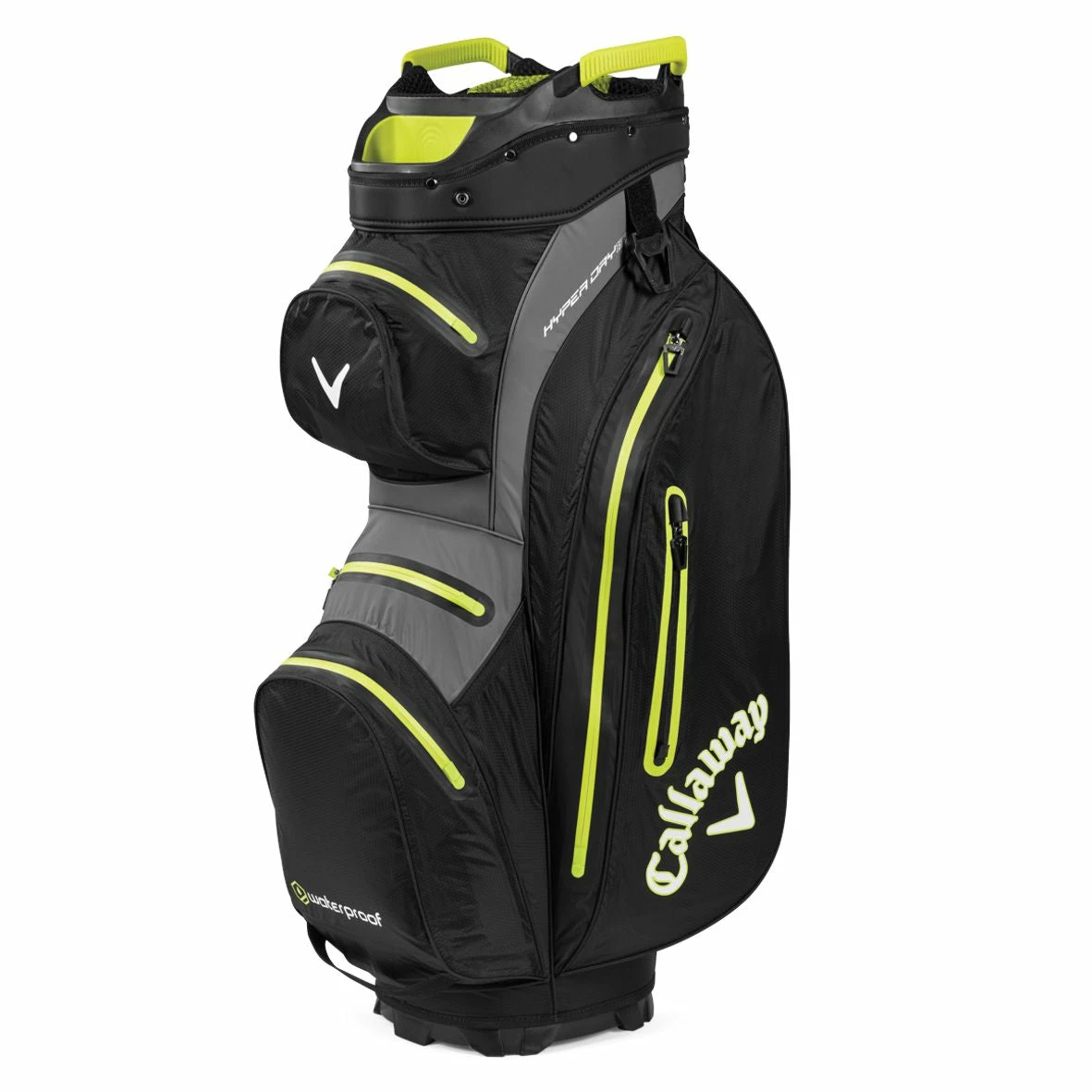 The Hyper Dry Cart Bag from Callaway is designed to fill all requirements for golfers, while offering 100% waterproof protection. Featuring a new 15 way friendly divider system with 15 individual length dividers and an integrated TPE putter section. The Hyper Dry 15 Cart bag also has an ‘E’ trolley friendly base which allows the bag to fit perfectly on either push/pull or electric trolleys. The bag features 9 waterproof pockets which include and range of valuables pockets, cooler pocket, full length pockets & more.