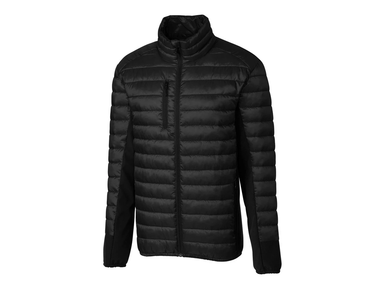 Contrast softshell fabric adds a sporty edge to this quilted layer – and makes an eye-catching style for your logo. This 100% polyester jacket is temperature rated 5-50 degrees Farenheit and features quilted hybrid with colorblock softshell side panels, reverse coil zippers, elasticized cuff and hem, front forward shoulder, and right chest zip pocket.