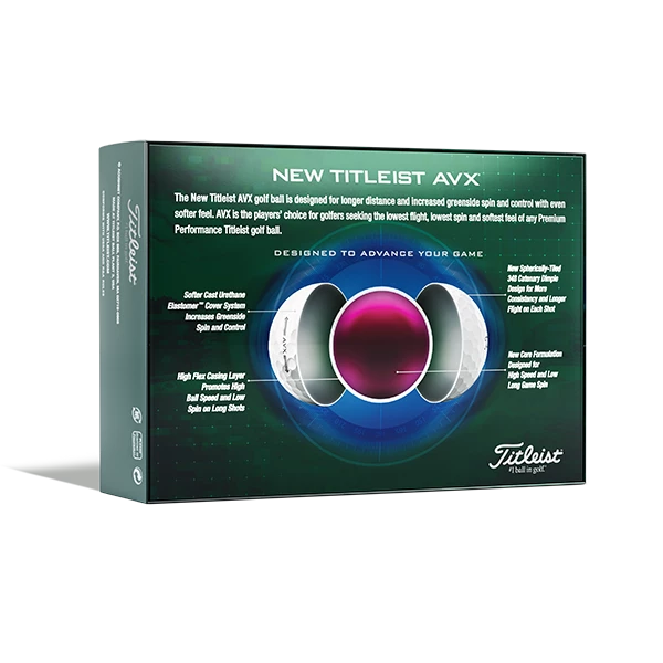 New Titleist® AVX® golf balls are for golfers looking to level up their game with advanced technology that delivers low flight, low iron spin for noticeably longer distance, incredibly soft feel and now, even more control.